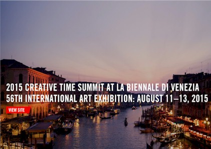 At the invitation of Okwui Enwezor, artistic director of the 56th International Art Exhibition of la Biennale di Venezia, the 2015 Creative Time Summit will participate in the program All the World’s Futures. The Summit is a core program of Creative Time, the innovative experimental arts organization based in New York. This year’s Creative Time Summit will focus its renowned summit on the topic of Curriculum during a lively three-day forum in mid August. In development since summer 2014, this year’s Creative Time Summit has engaged a broad range of thinkers, artists, researchers, and activists in a series of plenary sessions to address what it means to produce, transform, and transmit knowledge across the conflicted terrain of the world today.