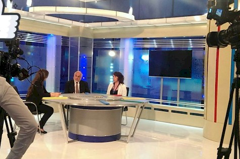 Annette Blum and colleague Rabbi Abraham Cooper of the Simon Wiesenthal Center are interviewed by Kultura Plus TV in Baku, Azerbaijian on their impressions of engaging in the World Forum on Intercultural Dialogue.